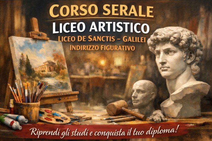 A Manduria sono aperte le iscrizioni per l’anno scolastico 2026/2027 al corso serale liceo artistico attivato dal Liceo “De Sanctis – Galilei”, indirizzo Figurativo. Il percorso, dedicato all’istruzione degli adulti (secondo livello), è stato autorizzato dalla Regione Puglia con Deliberazione di Giunta Regionale n. 1658 del 30 ottobre 2025.