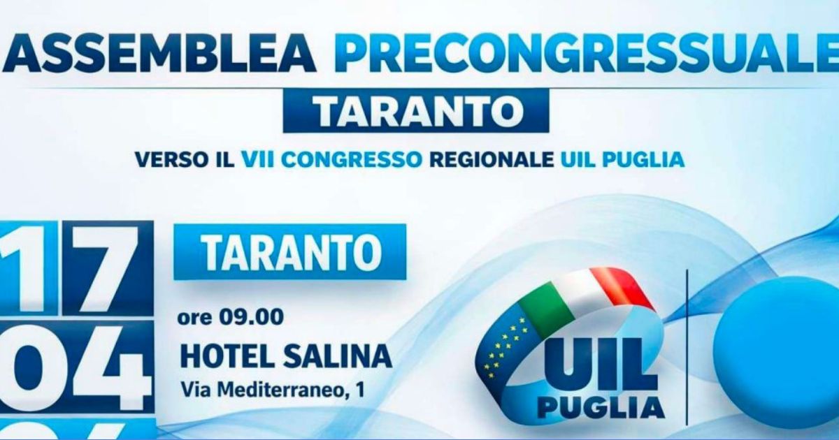Le conclusioni saranno affidate a Stefano Frontini, segretario regionale UIL Puglia, che avvierà anche le procedure per l’elezione degli organismi statutari. L’assemblea del 17 aprile si presenta così come un passaggio politico e sindacale rilevante: non un appuntamento formale, ma un momento in cui Taranto torna a chiedere risposte su lavoro, salute, industria e diritti.