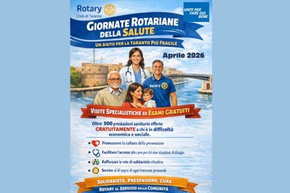 Le Giornate Rotariane della Salute portano a Taranto 300 prestazioni sanitarie gratuite dedicate alla popolazione fragile. L’iniziativa, promossa dal Rotary Club Taranto per il mese di aprile, punta a...